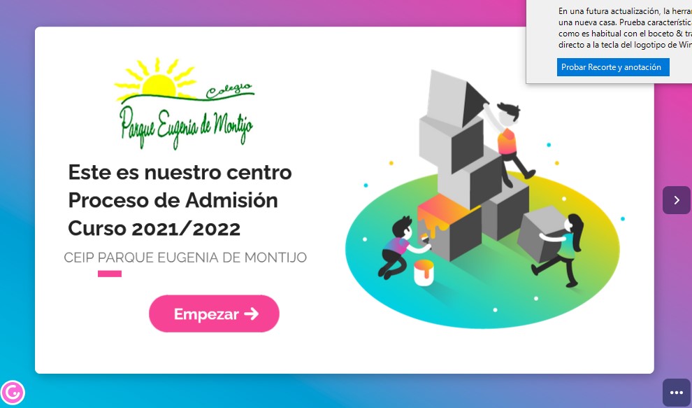 Nuestra experiencia en esta comunidad educativa es muy positiva y estamos muy orgullosas de nuestro cole y de la gente que lo conforma. Las familias pueden participar, proponer actividades y ser parte del Colegio y aunque somos pequeños intentamos crecer junt@s como personas de forma global y solidaria. El colegio fomenta que todos cuiden de todos, a través la colaboración y apoya una educación integral en contenidos y valores. Si eres del barrio, estaremos encantadas de darte la bienvenida. Os esperamos muy pronto!! Un fuerte abrazo.
