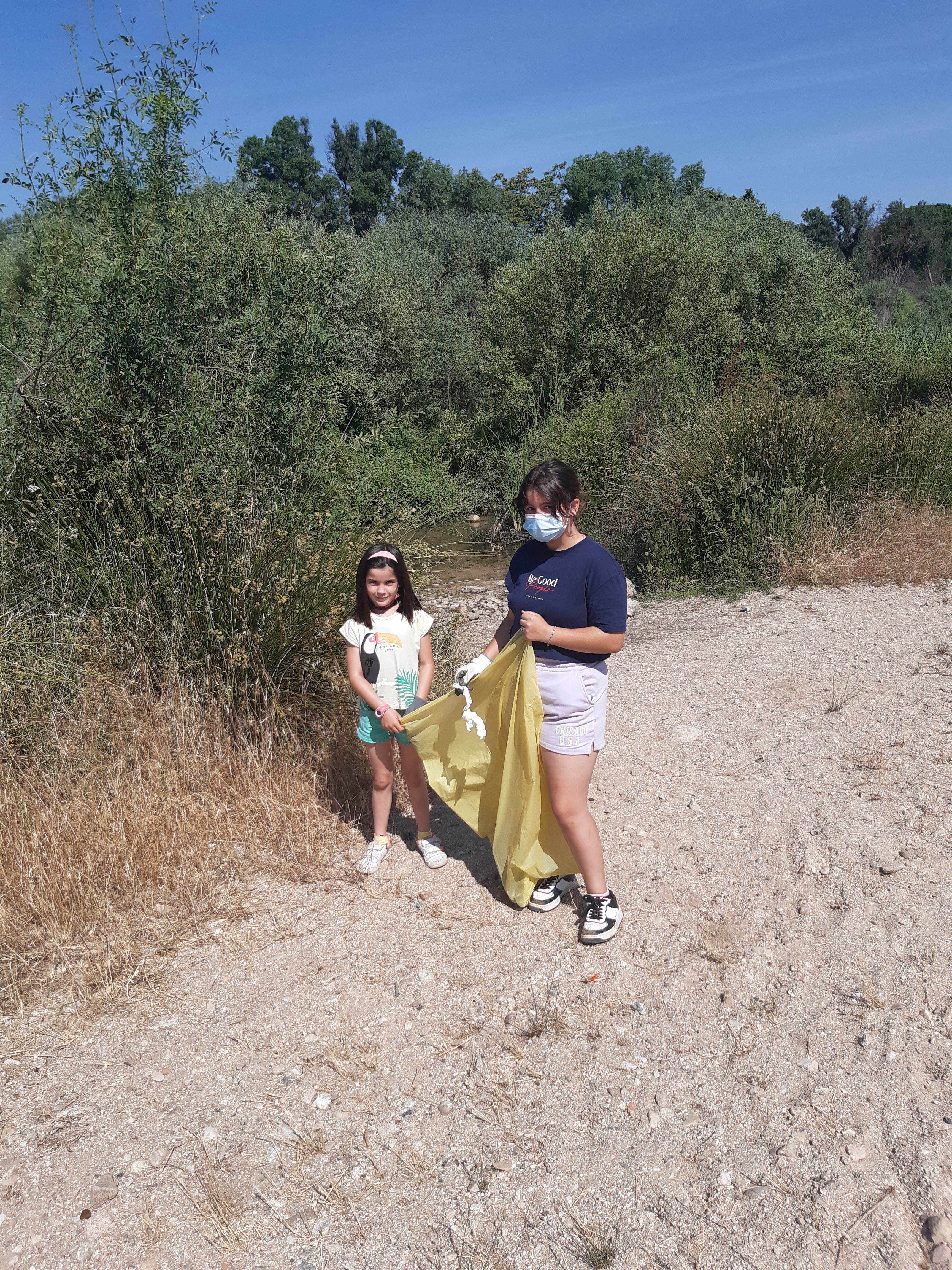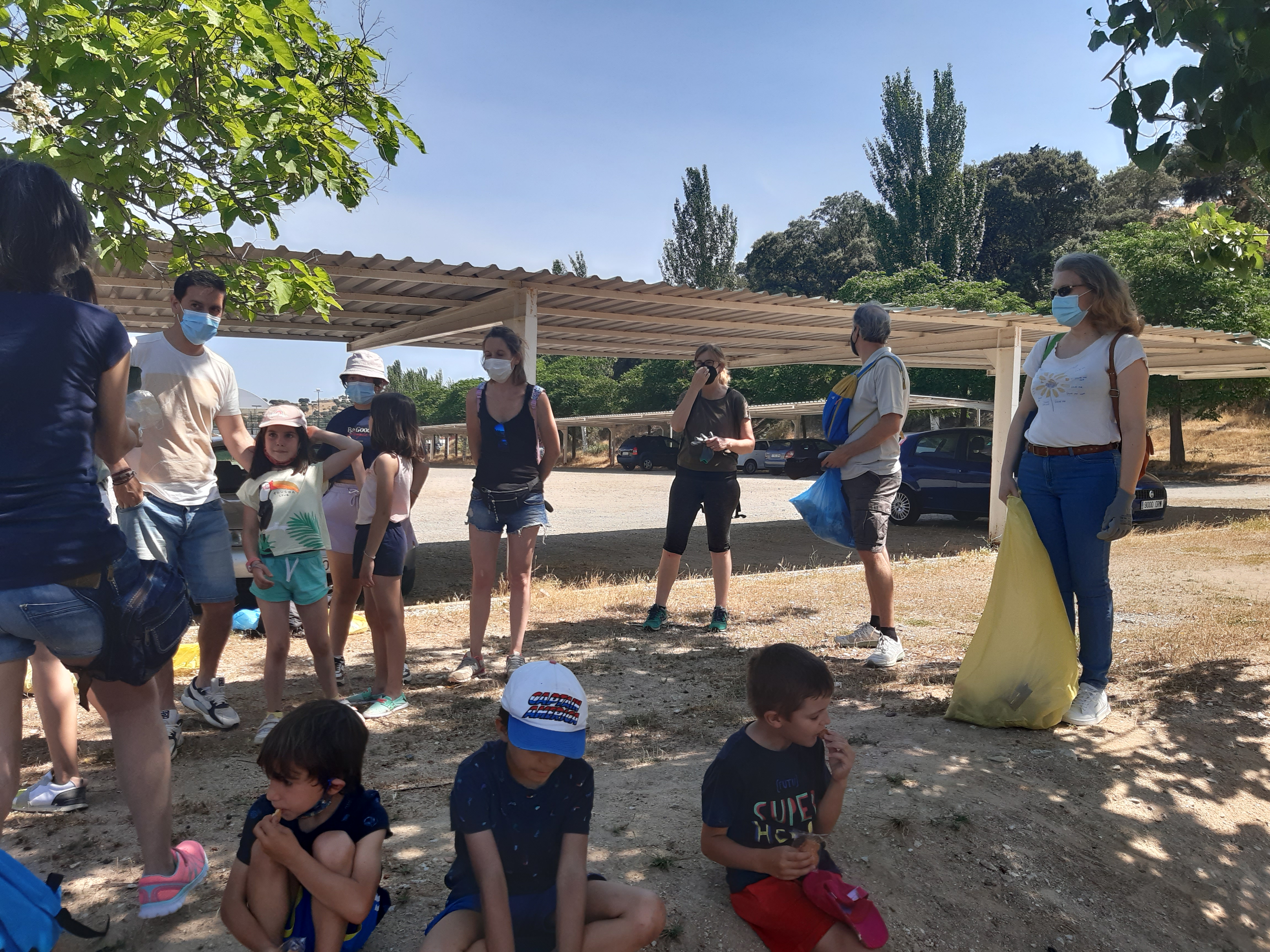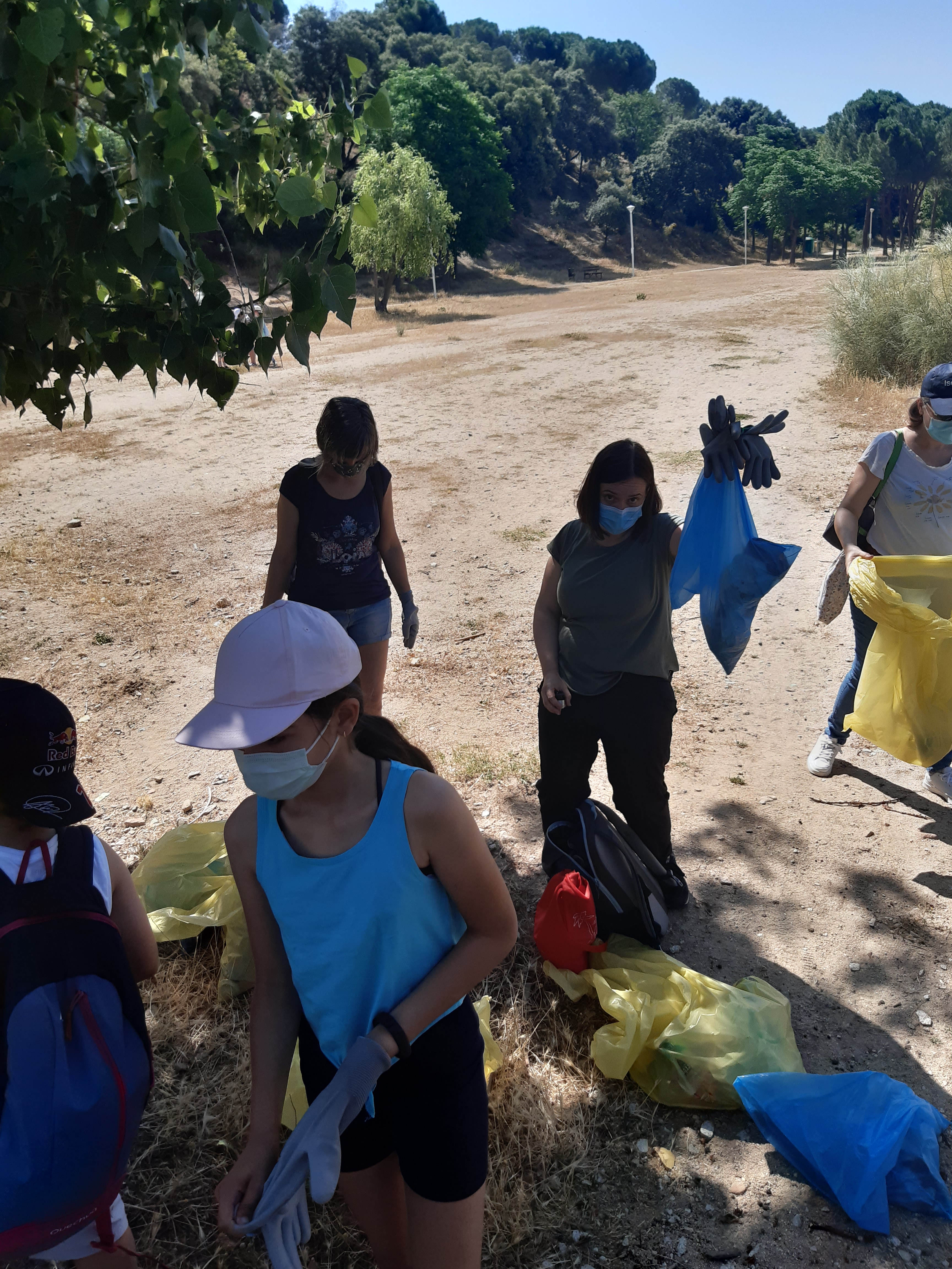 Hoy era el gran día. Tras mucho tiempo sin juntarnos, sin poder hacer actividades desde el AFA, por fin nos hemos «liberado». Hemos madrugado para encontrarnos a las 10:30 en la ñlaya del río Alberche. Las asociaciones SEO Y WWF colaboran en este proyecto y nos han donado guantes y bolsas de basura que hemos repartido para ponernos manos a la obra. Objetivo principal: dejar la vereda del río limpia como los chorros del oro. Objetivo secundario: Tomarnos un picnic juntos a la sombríta. Como veréis en estas fotos, ambos se han cumplido.
