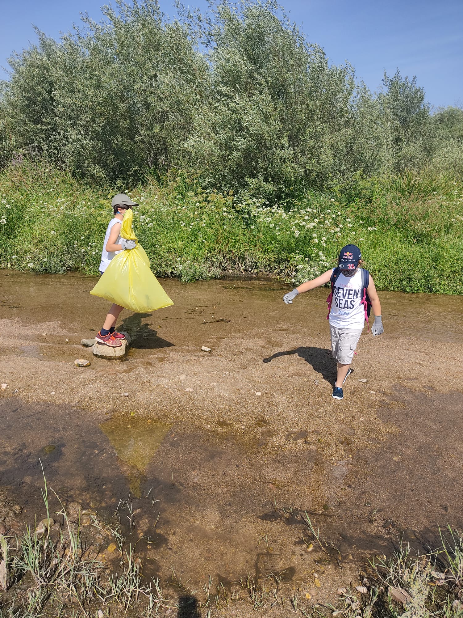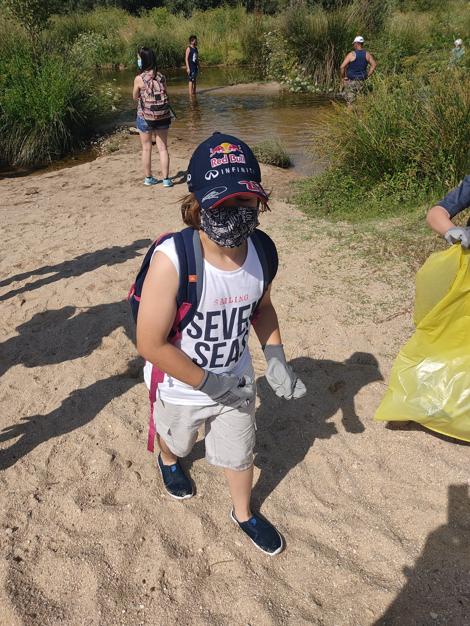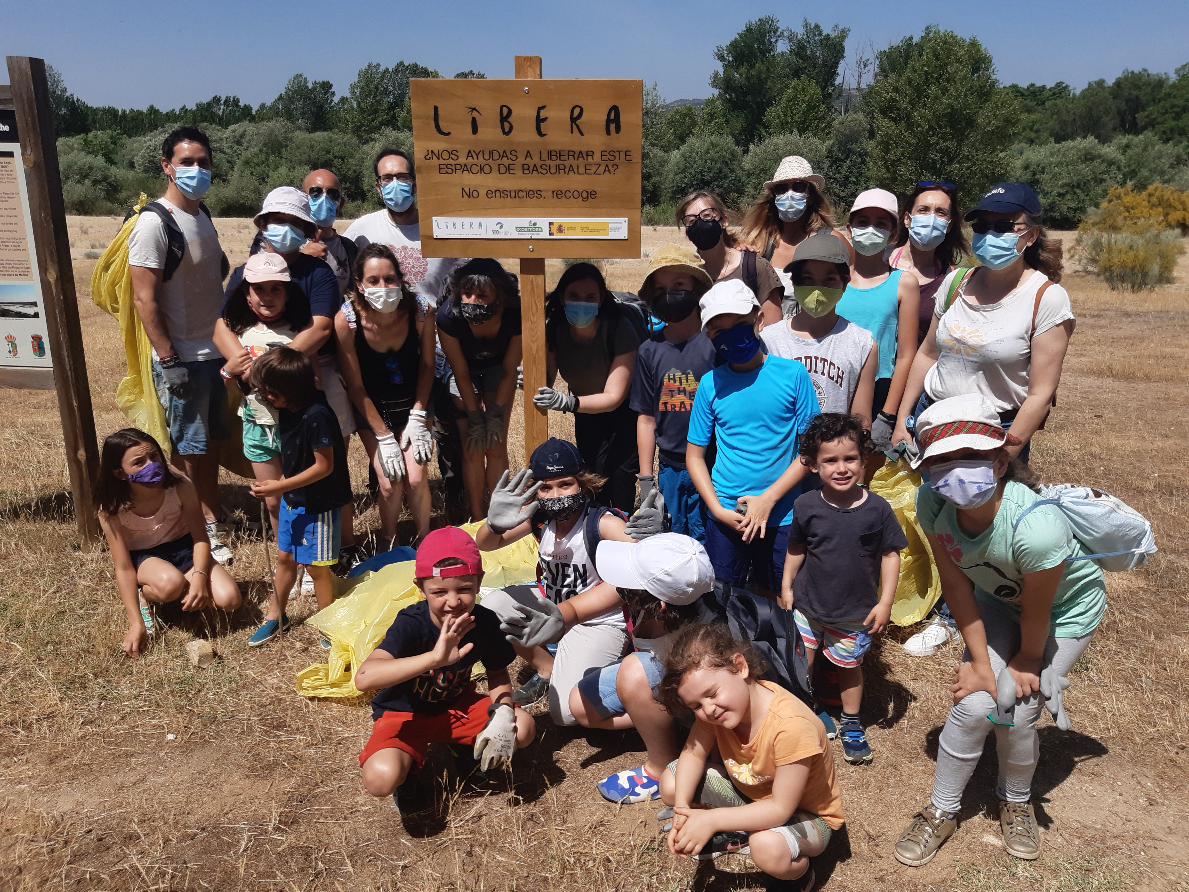 Hoy era el gran día. Tras mucho tiempo sin juntarnos, sin poder hacer actividades desde el AFA, por fin nos hemos «liberado». Hemos madrugado para encontrarnos a las 10:30 en la ñlaya del río Alberche. Las asociaciones SEO Y WWF colaboran en este proyecto y nos han donado guantes y bolsas de basura que hemos repartido para ponernos manos a la obra. Objetivo principal: dejar la vereda del río limpia como los chorros del oro. Objetivo secundario: Tomarnos un picnic juntos a la sombríta. Como veréis en estas fotos, ambos se han cumplido.