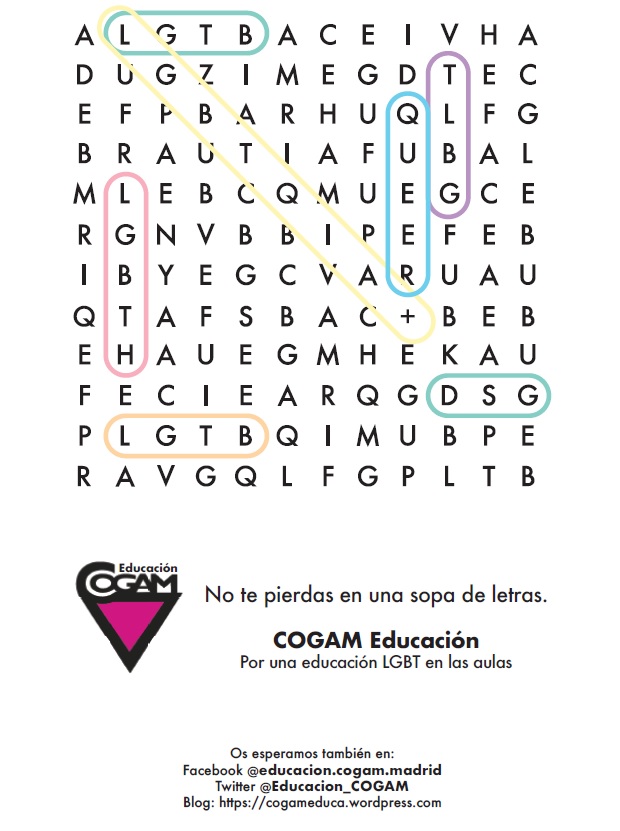 Desde la AFA os anunciamos una nueva charla del curso, tras el largoparon del COVID. LA hemos organizado en colaboración con el Grupo de Educación de COGAM (Colectivo de Lesbianas, Gays, Bisexuales y Transexuales de Madrid) y tendrá lugar el martes 24 DE MAYO a las 16:00 horas.