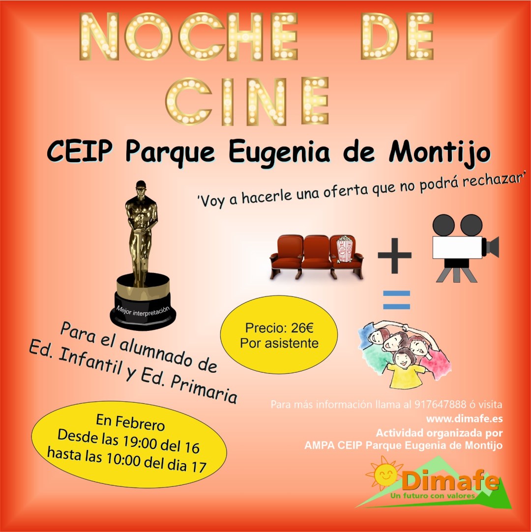 - Aunque sabemos que es una pequeña inversión creemos que merece la pena porque es una experiencia muy especial en su colegio y compartida con sus compañer@s. Traer 6 monitores, las actividades, la cena y el desayuno supone un coste de 26 euros por niño para no socios y de 23 euros para los socios del AFA. Podéis realizar la reserva en la web de DIMAFE anunciada en el cartel de la actividad hasta el 1 de Febrero.