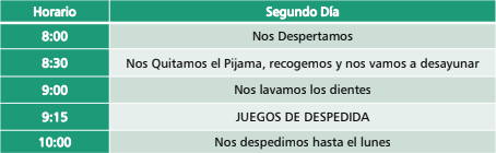 - La cena y el desayuno se darán en el colegio por lo que no hay que llevar comida de ningún tipo (Tampoco chuches para evitar problemas de alergias)